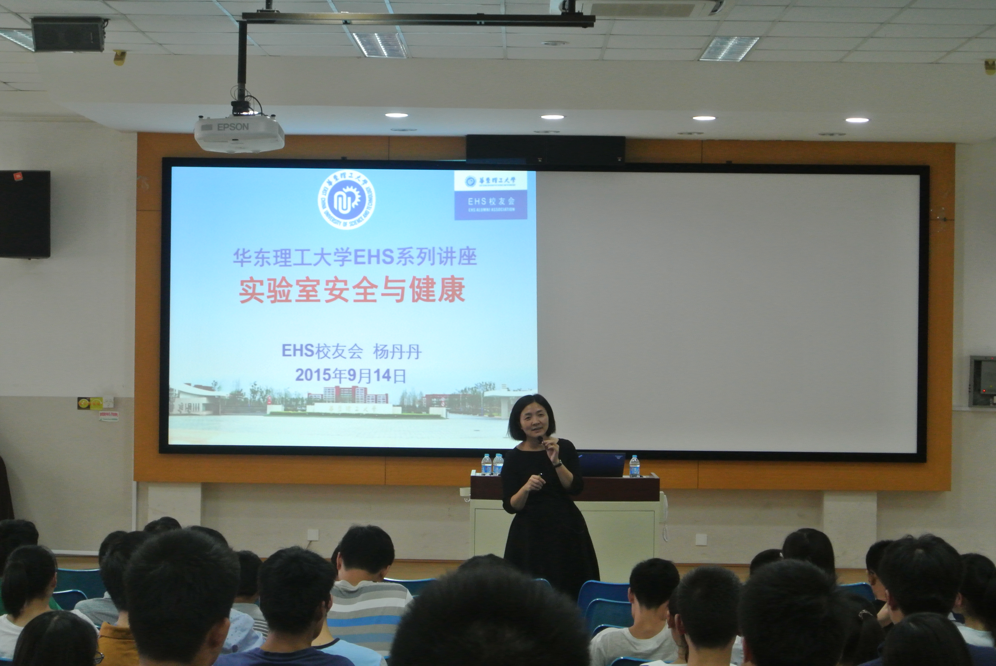 和华东理工大学EHS(Environment, Health, Satefy)校友会联合主办的专题报告会在徐汇校区八教101召开。EHS校友会独立高级咨询顾问杨丹丹校友和3M公司技术专员陆文校友为14级研究生作了《实验室安全与健康》专题讲座。