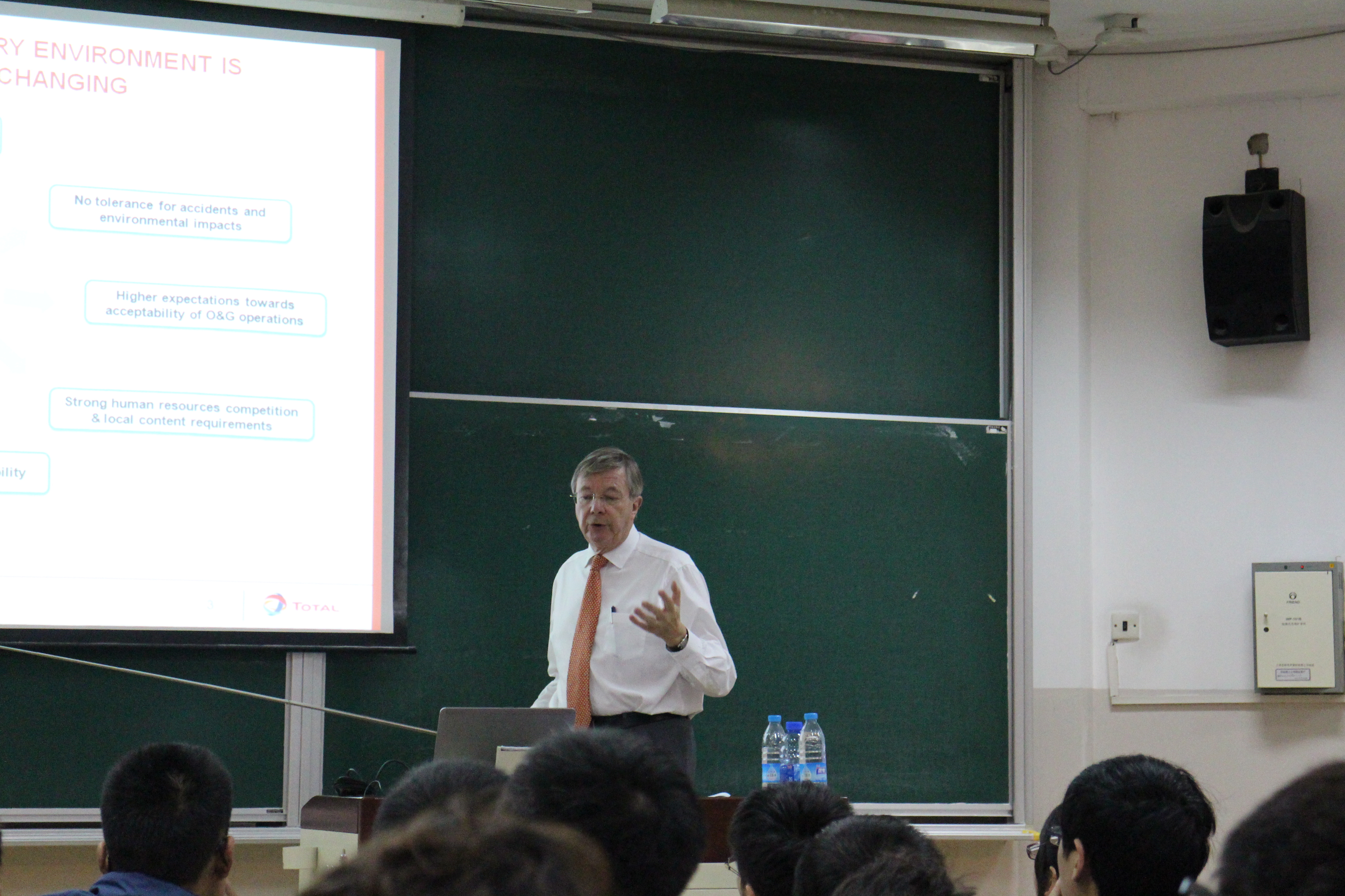 领导李涛老师介绍了道达尔公司与本院的近些年来密切的合作,同时介绍了这次活动是道达尔公司针对中国化工学科水平前列的高校开展的交流活动,旨在提高化工类研究生对于实际生产的了解,并希望同学们能把握好这次与资深教授工程师交流的机会,能开阔视野的同时,学有所得。