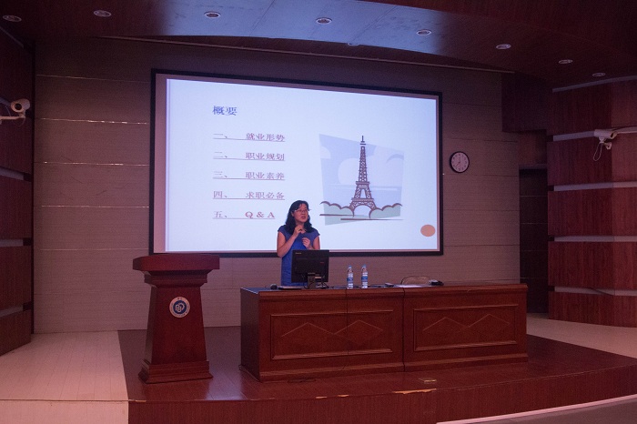9月9日,学院请了就业指导中心的邹玉梅老师以《从学校到职场——我的第二起跑线》为题,为学生们讲解就业新形势,给了新生职业规划第一课,让学生们能够更好地规划自己的研究生生涯,制定自己的人生目标。