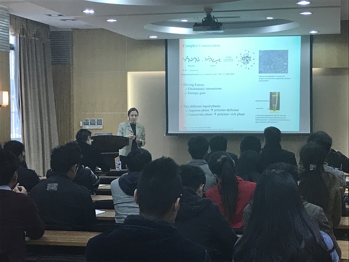 郭旭虹教授,徐益升副教授邀请,来我校徐汇校区交流访问并作了题目为”Complex Coacervation in Protein-Polyelectrolyte & Polyelectrolyte Polyelectrolyte systems”的学术报告。郭旭虹教授主持了主题报告会,同时出席会议的还有国产肛交-国产肛交视频