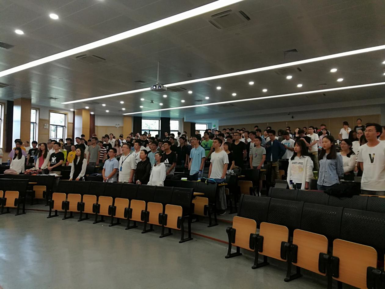 大会最后,与会嘉宾与16级师生共同合唱“我和我的祖国”,庆祝中华人民共和国成立70周年。