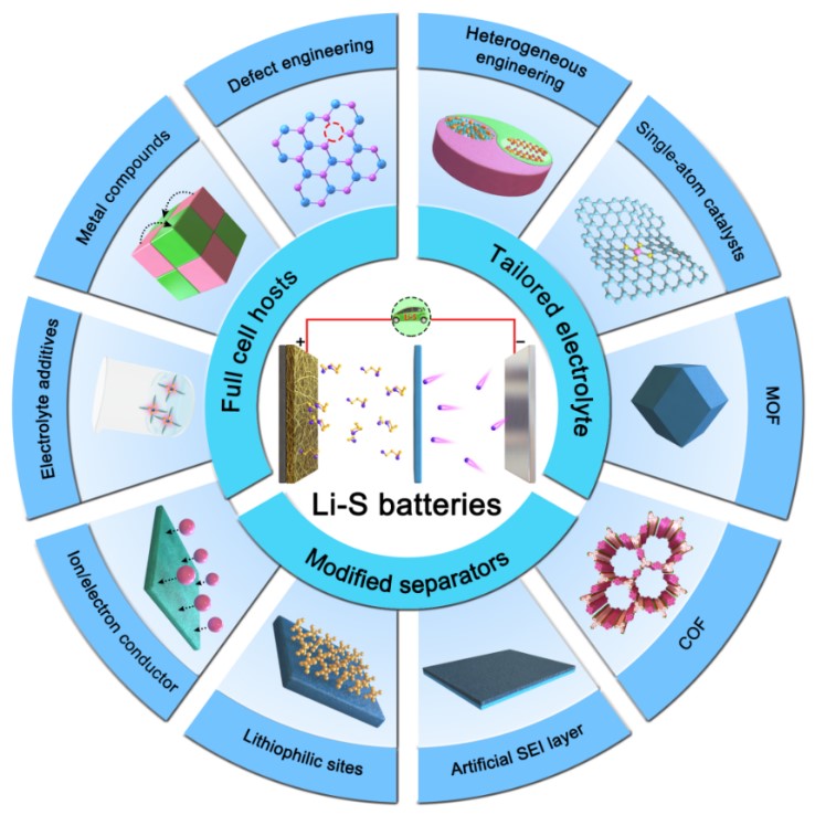 图片说明:抑制多硫化锂发生“穿梭效应”和枝晶锂生长的策略