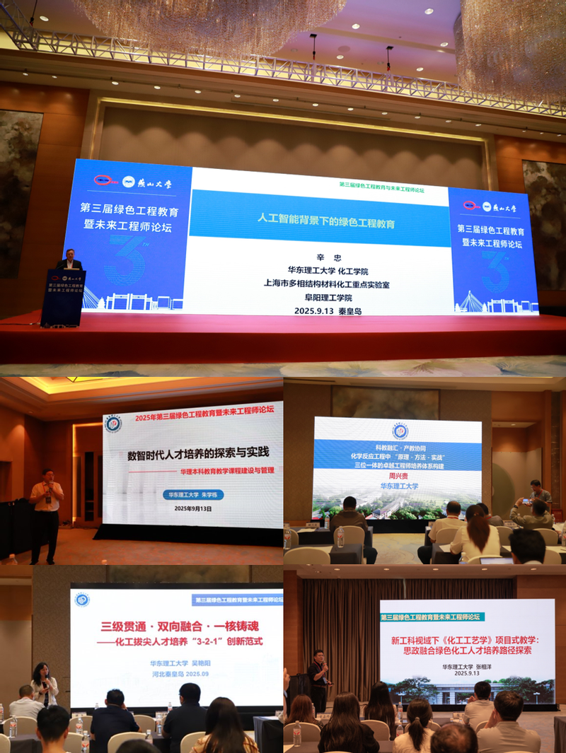 多位教师于9月12日至15日赴河北秦皇岛参加了由中国化工学会主办的“第三届绿色工程教育暨未来工程师论坛”。本次论坛以“数字赋能绿色工程・融合共创可持续未来”为主题,汇聚了来自全国高校、科研院所和产业界的专家学者,共同探讨绿色工程教育创新、产教融合、人工智能赋能化工教育等前沿议题。
